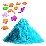 DIVERSIÓN INFINITA: arena mágica de color azul ideal para estimular la imaginación de los niños y ayudarles a mejorar su motricidad fina. La arena cinética es blanda y fácil de moldear o esculpir, ya sea a mano o con los moldes. La arena moldeable para niños conserva su forma y sus detalles de manera impresionante y nunca se seca ni se endurece