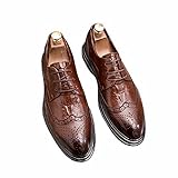Zapatos de Vestir para Hombres Brogue Punta Puntiaguda Zapatos de Cuero con Cordones Bajos y concisos Zapatos Oxford Elegantes para Banquete
