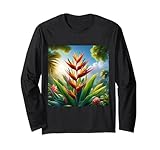Heliconia flores botánica vintage retro planta diseño Manga Larga