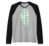 Illinois Buffalo Plaid Home State Country Lime Western Lindo Camiseta Manga Raglan