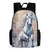 Vnurnrn Caballos Blancos Corriendo Niñas Mochila de Estudiantes Mochilas para Viajes Escolar Niños