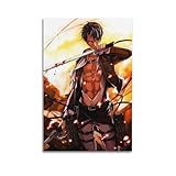 EKoKim Póster de anime Attack on Titan Levi, pintura decorativa, póster de pared en lienzo e impresión artística moderna para decoración de dormitorio familiar, 20 x 30 cm