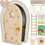 🐭 DETALLES EXCLUSIVOS 🐭 Incluye una Puerta Mágica con bisagras que se abre y se cierra con fondo mágico, una escalera de madera, un felpudo o un plato con quesito, una bolsita para los dientes, stickers adhesivos para sostener la puerta, estrellitas de pegatina luminiscentes y unos originales certificados de dientes.