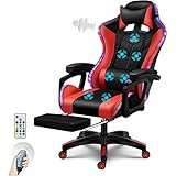 Silla de juego ergonómica con masaje y soporte lumbar Reposapiés Función reclinable Silla gamer con altavoces y luces LED Sillas de computadora de oficina para adultos,Rojo